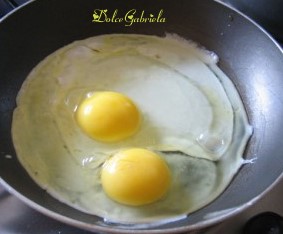 e le uova cotte in padella con un paio di cucchiai di olio d'oliva, sale e pepe.